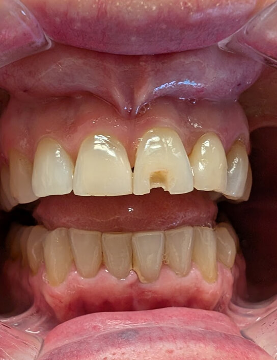 These before-and-after photos show how our veneers can reshape your smile to address chips, gaps, discoloration, and broken teeth.